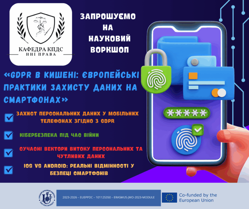 Запрошуємо вас приєднатися до онлайн-презентації Звіту за другий рік реалізації освітнього проєкту ERASMUS-JMO-2023-MODULE – ERASMUS2027 – 101125350 – «EUEPPDC»: «Досвід ЄС щодо захисту персональних даних в кіберпросторі».