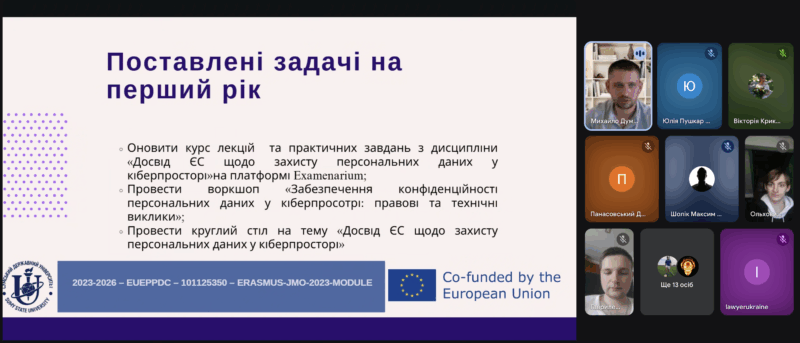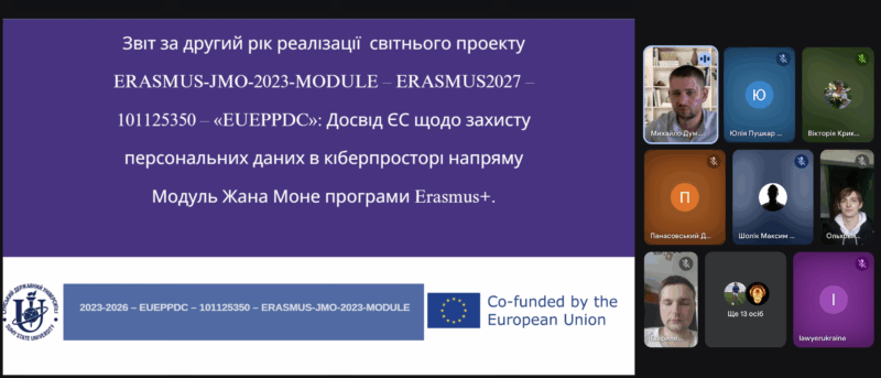 Кафедра кримінально-правових дисциплін та судочинства (КПДС) продовжує успішну реалізацію освітнього проєкту “EUEPPDC” в межах програми Erasmus+, напряму Модуль Жана Моне. Проєкт, присвячений впровадженню та дослідженню європейського досвіду захисту персональних даних у кіберпросторі, досягнув значних результатів за другий рік своєї діяльності.
