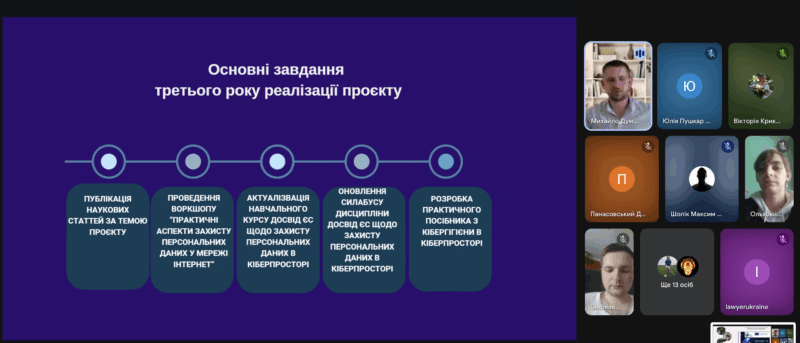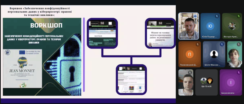 - Науково-практичний воркшоп: Проведено захід на тему «Забезпечення конфіденційності персональних даних у кіберпросторі: правові та технічні виклики». Учасники обговорили актуальні проблеми та інструменти для ефективного захисту даних.