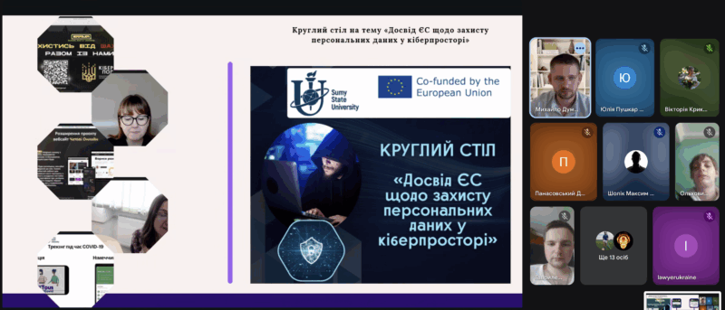 - Круглий стіл: Організовано дискусію «Досвід ЄС щодо захисту персональних даних у кіберпросторі», що об’єднала експертів для обміну думками та аналізу найкращих європейських практик.